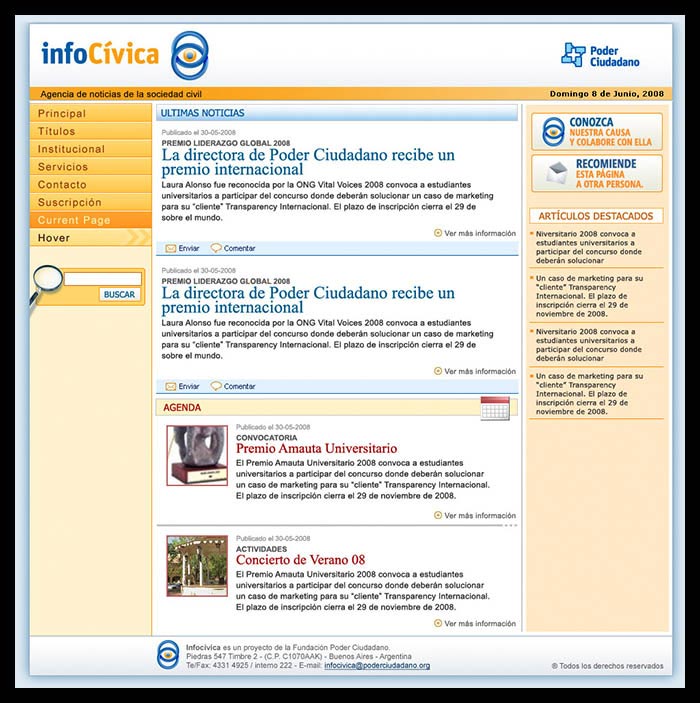 Design and layout for this wwebsite dedicated to watch for the interest of the citizens of Buenos Aires city. 2009