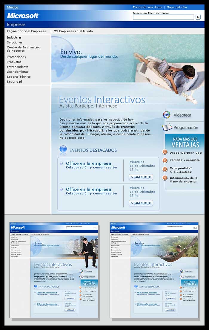 Creation, design and layout for several Microsoft regional campaigns (LATAM). 2002/2007