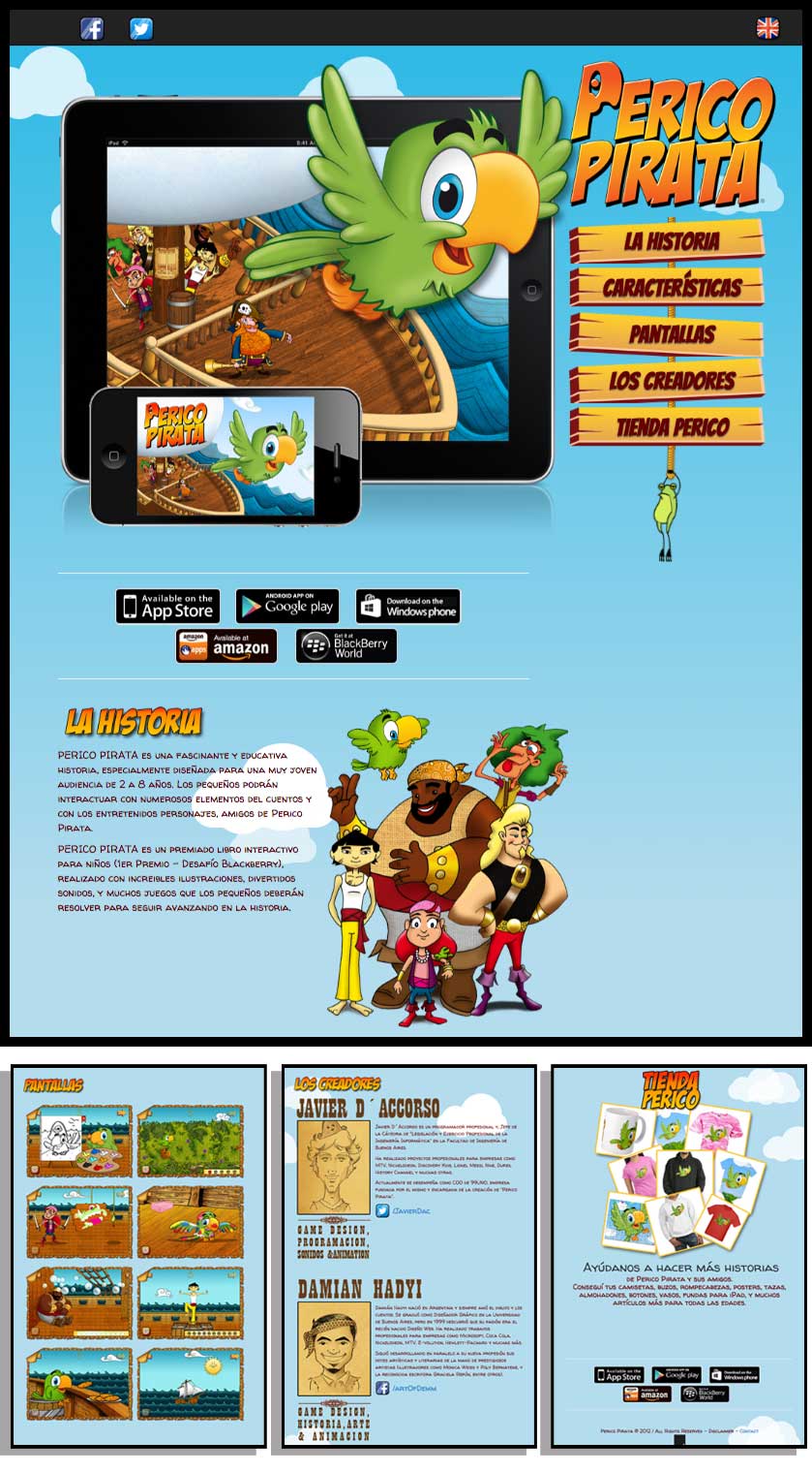 PERICO PIRATA, a unique interactive storybook app for toddlers and kids. It stands out for its visually stunning presentation, funny interactivity and fantastic playabilty.
