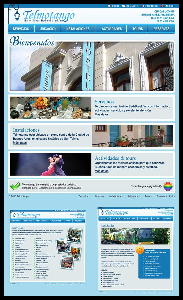 Creation, design, layout and development for a hostel in Buenos Aires. English and Spanish version.